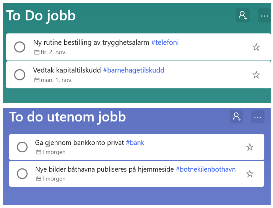 Og hva er gevinsten? Jeg har all informasjon om hva jeg skal gjøre den aktuelle dag på kalenderen i Outlook og på apper. Det er jo bare helt fantastisk.