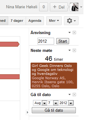 Cal inneholder ulike flotte mange ulike flotte bilder, og hver dag kommer det til syne ulike bilder. Jeg kan velge om jeg vil ha en uke eller hele måneder synlig. Det er bare å dra fingeren ned når jeg skal skifte mellom en uke og hele måneden synlig. De aktuelle aktiviteter vil fremkomme til høyre slik dette bilde viser.